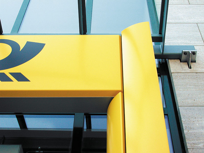 The yellow portal strengthens the brand identity of Deutsche Post and Postbank Centers through increased presence in streetscapes.